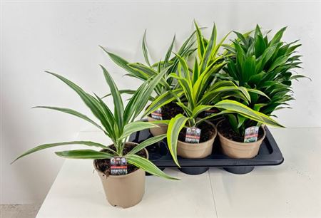 ≥ 1 pcs £ -.-- Colli 3 Pot Size 17 cm Content 6 Minimum plant height 45 cm Per shelf 24 Number of tops on highest stem 1 Per trolley 120 Number of cuttings/plants per pot 1 Stock 18 £ -.--≥ 1 pcs £ -.--Dracaena Mix