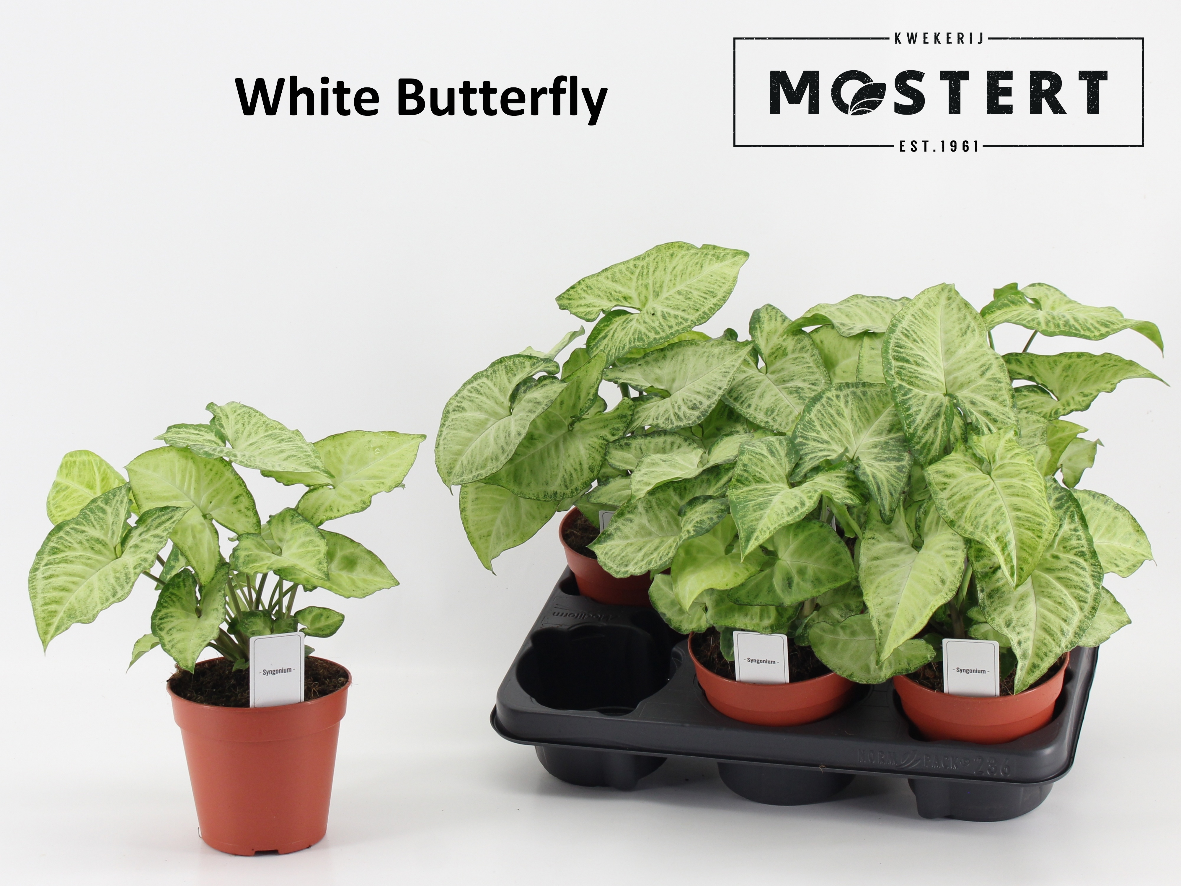≥ 1 pcs £ -.-- Colli 1 Pot Size 12 cm Content 6 Minimum plant height 35 cm Per shelf 36 Number of cuttings/plants per pot 1 Per trolley 252 Thickness 1 Stock 6 £ -.--≥ 1 pcs £ -.--Syngonium White Butterfly